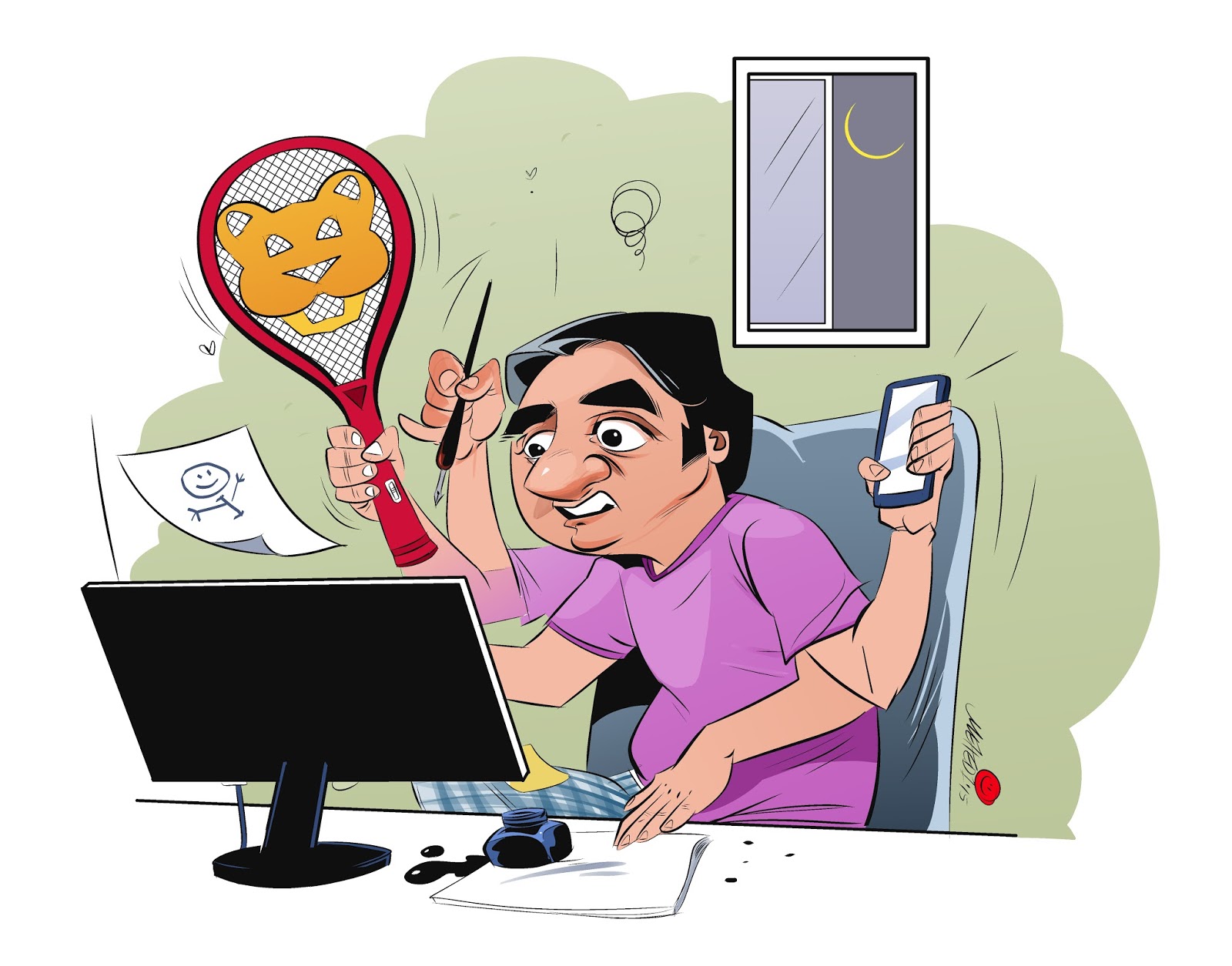 আর এই পোস্ট এর ড্রয়িংটা অন রিকোয়েস্ট। বাংলাদেশ প্রতিদিন থেকে তাদের ঈদ সংখ্যা রম্যের জন্যে কার্টুনিস্টের ঈদ সেকশনের জন্যে আঁকা। আজকাল সবাই-ই মাঙ্গাস্টুডিও তে আঁকে তাতে সবার ড্রয়িং কেমন যেন আমার সাথে মিলে যাচ্ছে। ব্যাপারটা অস্বস্তিকর। ভাবছি জল রঙ এ ফেরত যাব। মাঝখান থেকে নাইলে মনে হচ্ছে যেন উল্টো আমি আমার জুনিয়রদের কপি করছি :P